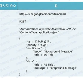 cURL을 이용한 FCM 클라우드 메시지 전송 이전 글에서는 FCM 클라우드 메시지를 어떻게 구성해야 하는지에 대해서 다뤄봤습니다.이를 정리한 표를 다시 한번 보면 다음과 같습니다. HTTP 메시지를 보내는 방법 중 상당히 원시적인 cURL을 이용한 방법으로 클라우드 메시지를 보내 보도록 하겠습니다. cURL (https://curl.haxx.se/)은 HTTP 뿐만 아니라 Telnet, SMTP, POP3, LDAP 등등 다양한 프로토콜을 지원하는 프로그램입니다. 웬만한 Unix 계열 운영체제에는 기본적으로 설치되어 있으나 윈도우에서는 아직까지(?) 바이너리를 직접 다운로드 받을 수 없고 Cygwin terminal에서 cURL을 사용하는 것을 권장하고 있으니 여기서도 그 방법으로 해보도록 하겠습니다. 혹시 Cygwin의 설치가 필요하다면 Cygw.. 더보기 이전 1 ··· 21 22 23 24 25 26 27 ··· 49 다음